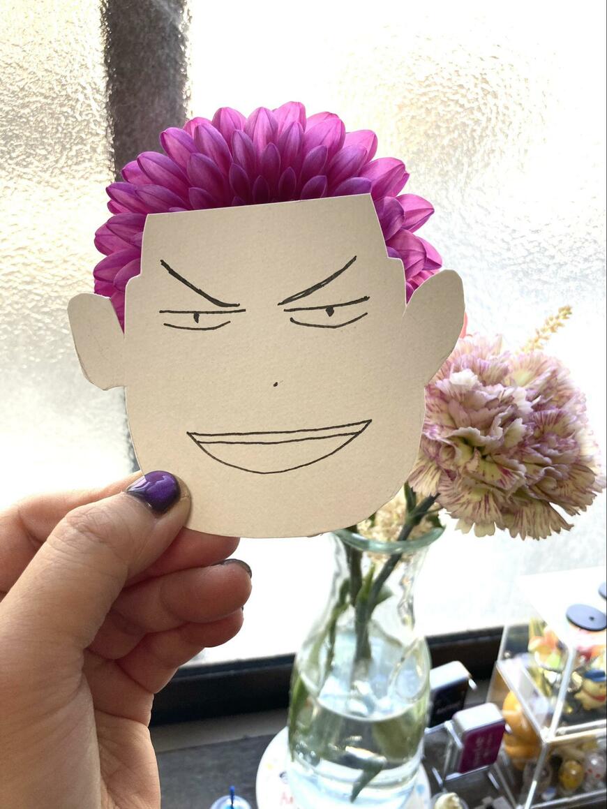 自宅に飾られたダリアの花が「大人気漫画の主人公」の髪型に似ていると話題になっています。