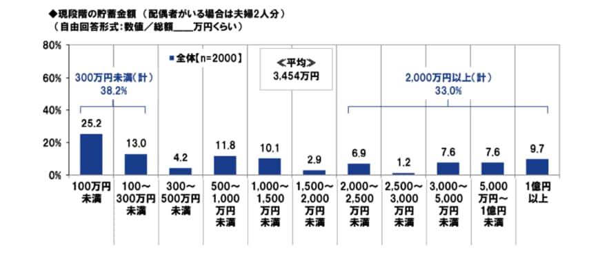 まずはPGF生命「2023年の還暦人(かんれきびと)に関する調査」より、現段階の貯蓄金額(配偶者がいる場合は夫婦2人分)の結果を見ていきましょう。