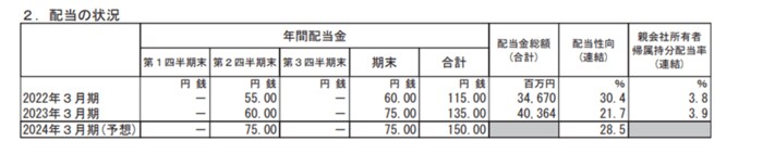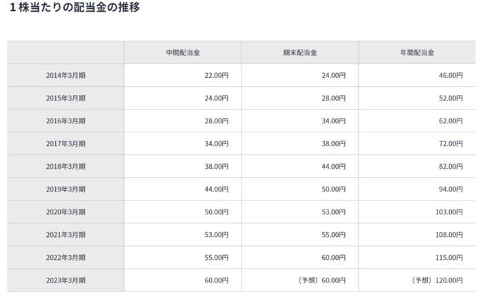 塩野義製薬の株式を1年前に買い、持ち続けたとすると、「2023年3月期の中間配当と2023年3月期期末配当」の計2回を受け取ることができます。