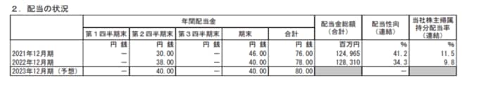 - 2022年12月期・期末配当:40円