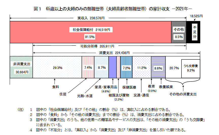 65歳以上の夫婦のみの世帯の平均生活費は、毎月25万5100円でした。