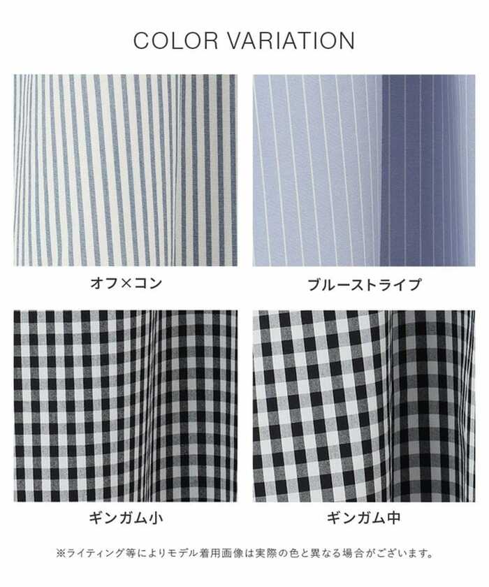 - カラーバリエーション:オフ×コン、ブルーストライプ、ギンガム小、ギンガム中