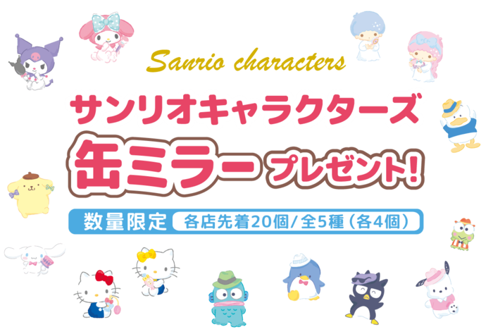 全国のセブン-イレブンで、対象のお菓子を一度に2個(組み合せ自由)購入すると、サンリオキャラクターズ「缶ミラー」が1個もらえるキャンペーンがスタート!
