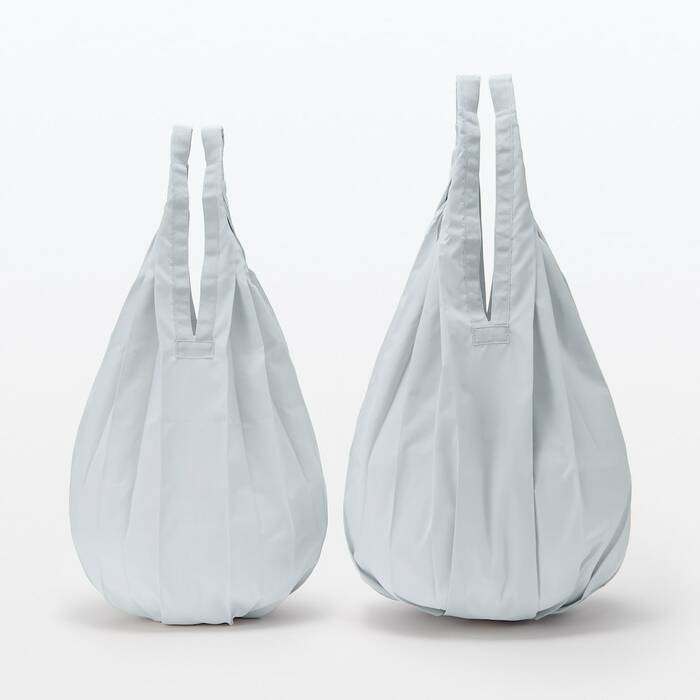 無印良品の「さっとたためるマイバッグ」は、Mサイズ(約56cm×28cm/約16L)とLサイズ(約63cm×30cm/約25L)の2種類があります。