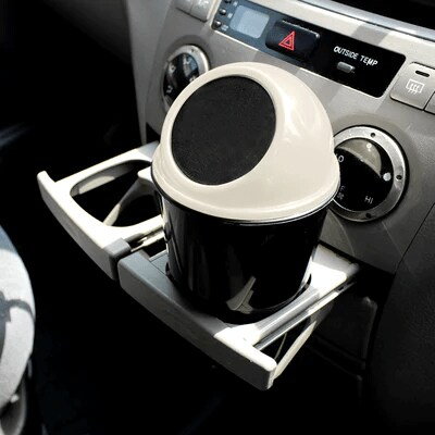 カップホルダーに収まる、蓋付のスマートなダストボックスです。レシートやお菓子の包み紙など、ドライブ中によく出てしまう紙ごみ類を捨てるのに便利。