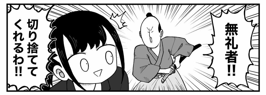 なぜこんなところにお侍さんがいるのかはさておき、新卒ちゃんの「鞘当て」行為にお侍さんはご立腹です。あわや大惨事になってしまいそうなところですが、新卒ちゃんは…。