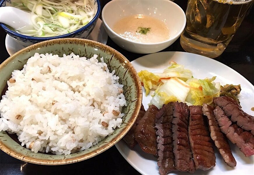 それ以前にも細々と食されていた形跡はありますが、現在の牛タン焼き、テールスープ、麦飯、漬物(青唐辛子の味噌漬け等)がセットになった“牛タン焼き定食”がこの頃から確立されたようです。