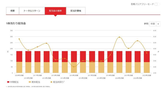 武田薬品工業の株式を1年前に買い、持ち続けたとすると、「2023年3月期の中間配当」と、「2023年3月期の期末配当」の計2回を受け取ることができます。