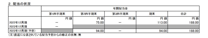 JTの株式を1年前に買い、持ち続けたとすると、「2022年12月期の中間配当」と、「2022年12月期の期末配当」の計2回を受け取ることができます。