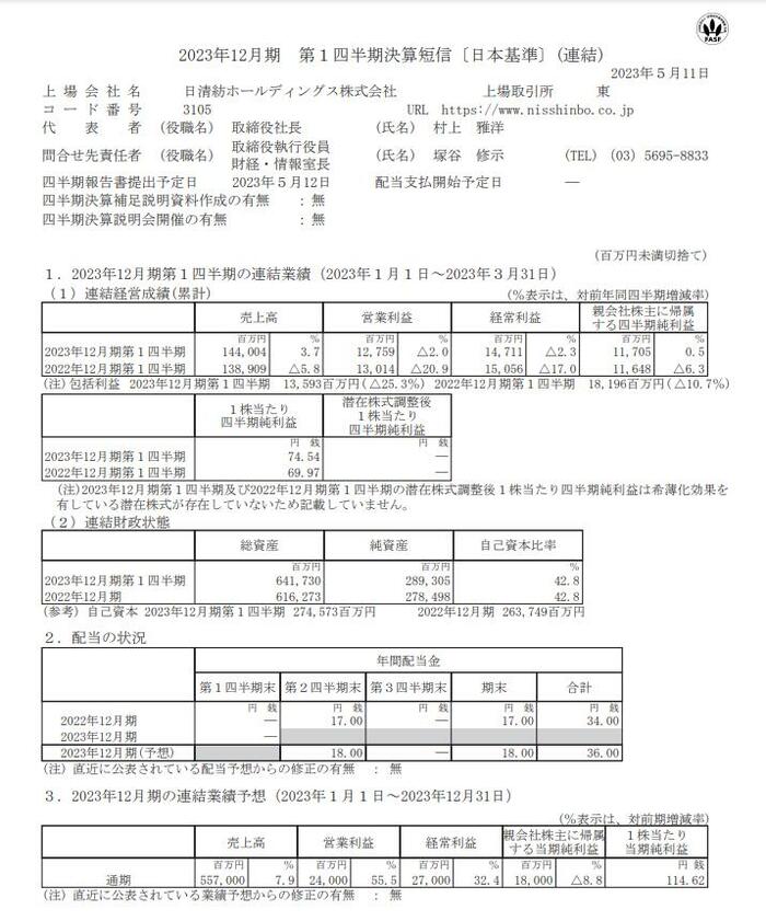 1. 日清紡ホールディングス(3105)の配当金のリターンはいくらか