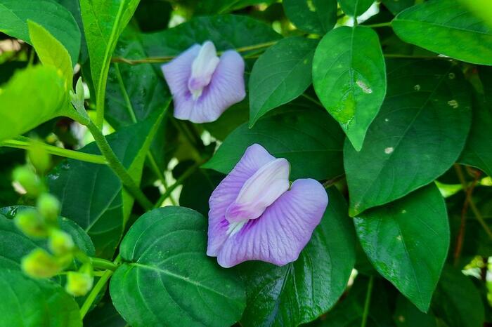 バタフライピーは、初夏から秋にかけて開花するマメ科のツル性植物。本来は多年草ですが、耐寒性に弱いため日本では一年草扱いになります。