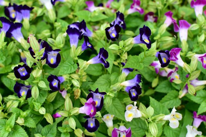 鉢やプランター、コンテナ栽培に映えるのは、ラッパ型の小さな花を咲かせるトレニア。初夏から晩秋にかけて青やピンク、白などの花を咲かせ、愛らしくも涼しげな景色をつくってくれます。
