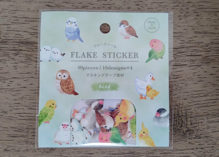 こちらはマスキング素材の鳥たちがかわいいフレークシールです。40枚入りの大容量シールです。
