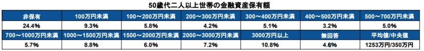 50歳代単身世帯金融資産保有額