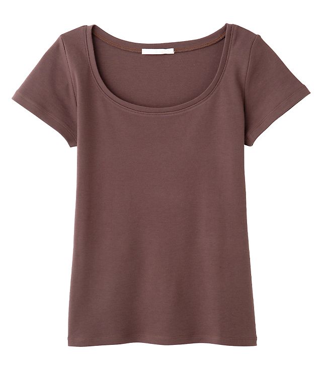 「デコルタンスムースT」は、ベーシックなデザインのTシャツです。ネックラインは広めに開いていてデコルテから胸元にかけてのエリアを美しく見せてくれます。厚みのある生地なので下着が響きにくいのもうれしいですね。