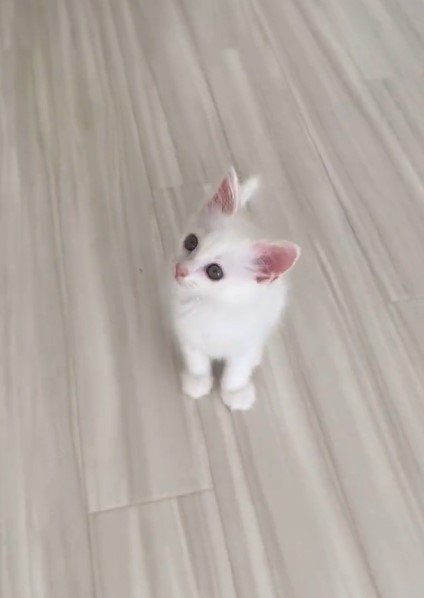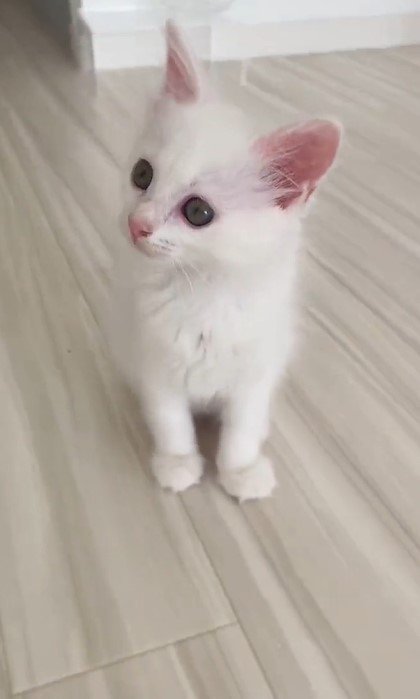 いろんなことが、とにかく不思議でたまらない……!かわいい白猫ちゃんの「興味津々」な姿がTwitterで注目を集めています。