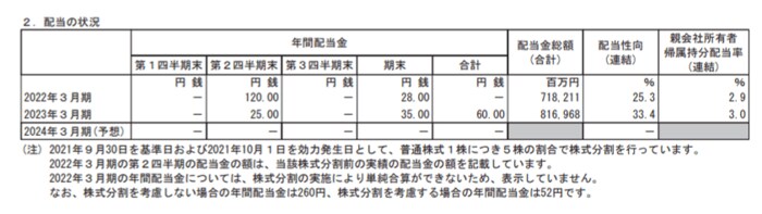 - 2023年3月期・中間配当:25円