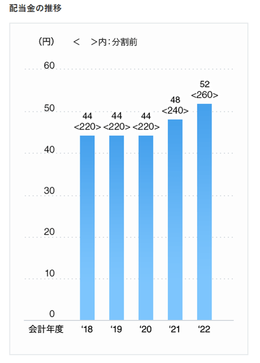 最後にトヨタの配当金の推移を確認しましょう。