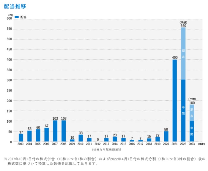 - 2023年3月期・期末配当:260円