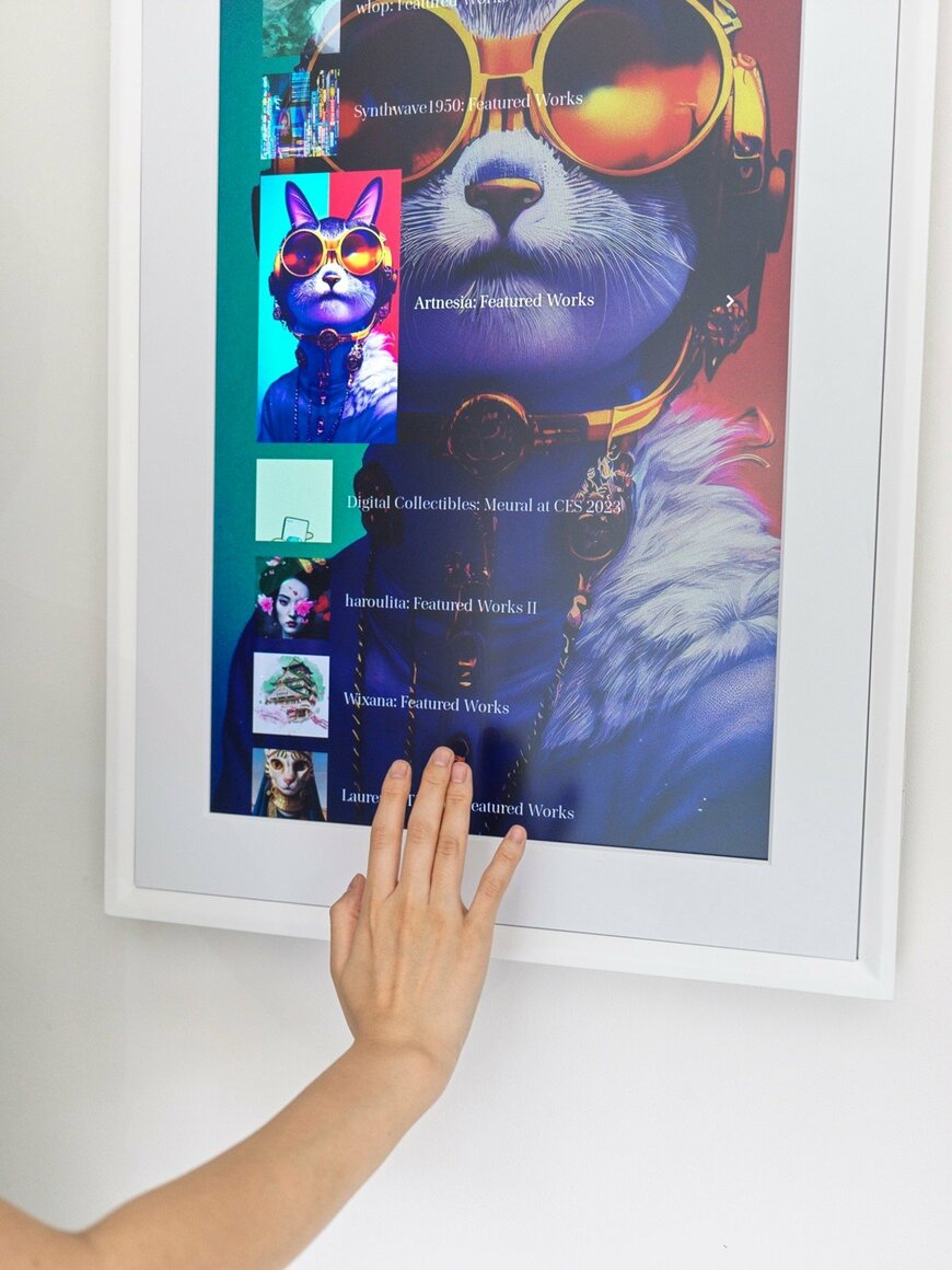 Meural CanvasはWi-Fiルーターなどで有名なNETGEARがリリースする異色の製品。アプリとサブスクリプションの組み合わせでさまざまな絵画を高品質に展示できるのが特徴です。