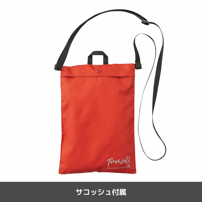 「トラベルシェルライトレインジャケット」は、着脱可能なフードとおしゃれなデザインで、雨の日にはもちろん、アウトドアなどでも活躍します。ジャケットとお揃いカラーのサコッシュつきなのもうれしいポイントです。