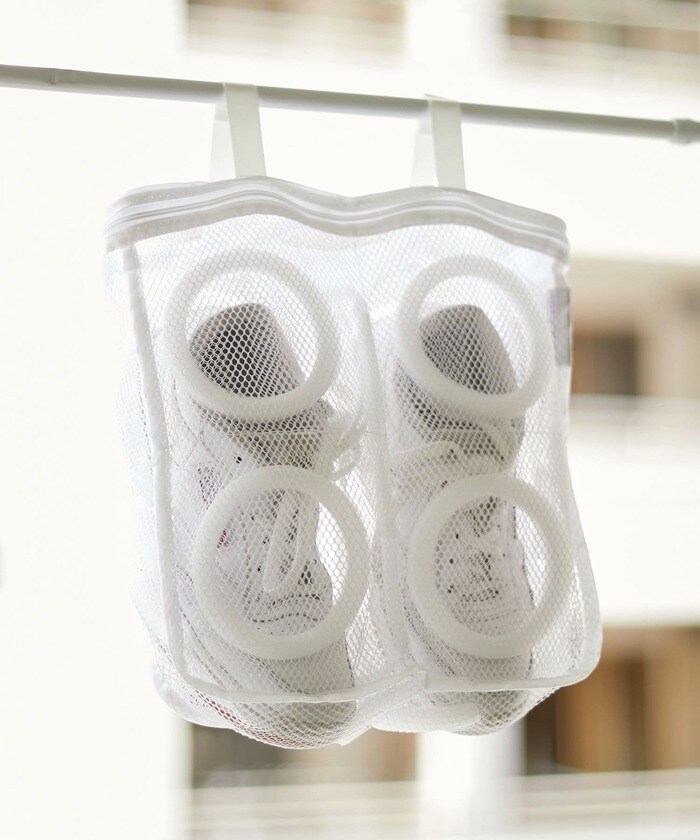スニーカーや上履きを洗濯機で洗えるシューズ用ネットです。クッションが入っているので、靴や洗濯機を傷つけにくいのが嬉しいポイント。