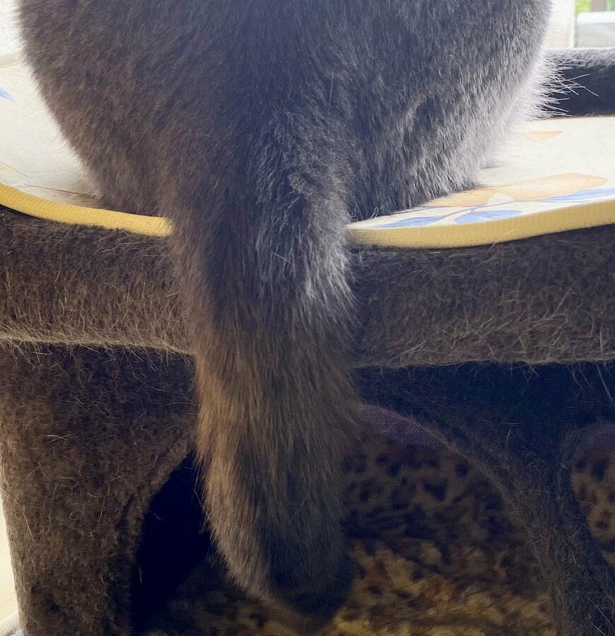 さらに「下に垂らした尻尾」は鼻のよう。グレーの毛色がゾウっぽさを引き立てています。ずっと眺めていると、猫ちゃんの後ろ姿だということを忘れてしまいそうです。