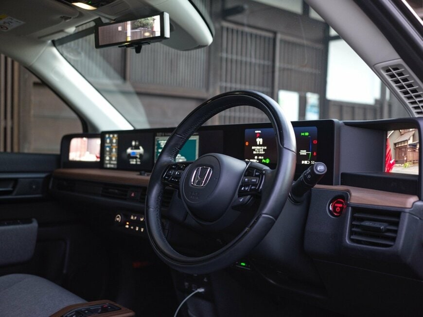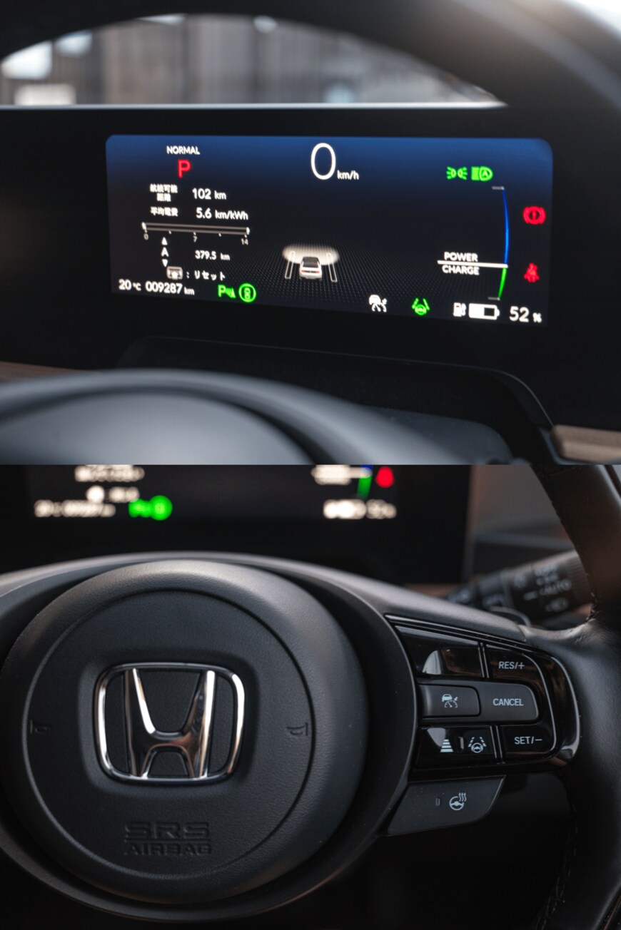 バックミラーやサイドミラーがカメラになっているのも助手席から同じ画像が見られるというメリットがあります。運転アシスト機能のHonda SENSINGもBEVのダイレクトに加減速できる長所でさらに良くなっている印象。