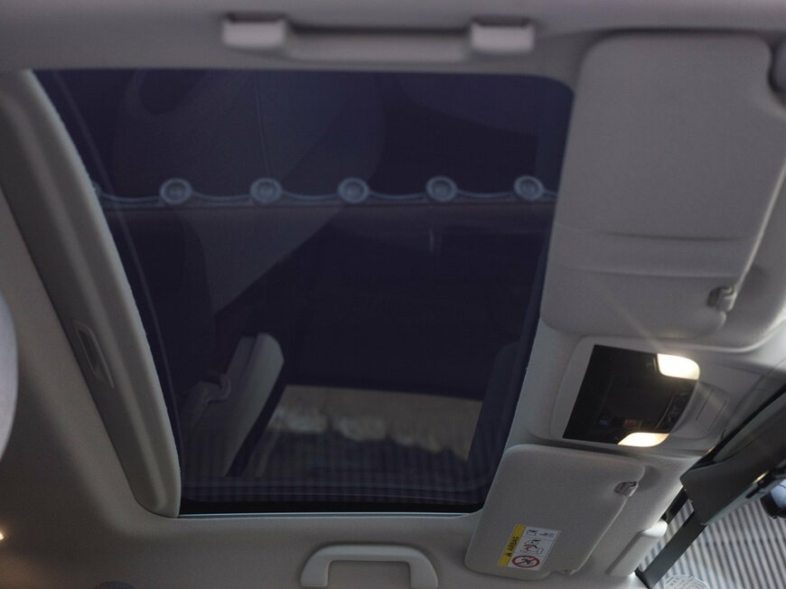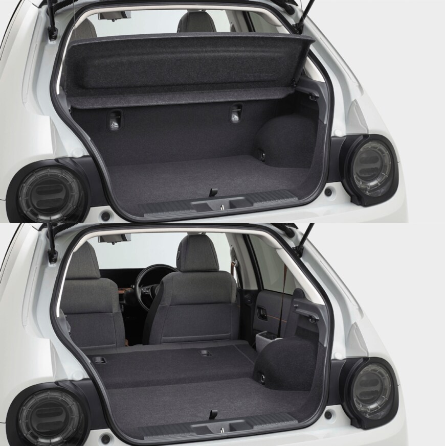 スカイルーフも開く仕様にせず最大サイズで設置したことでコンパクトな車内を広く感じさせてくれます。後部座席は四人乗りには少し狭いですが、毎日四人で乗ることの少なさを考えれば納得。座席を倒すことでかなり広いフラットスペースにできるので、大きな買い物にも対応できます。