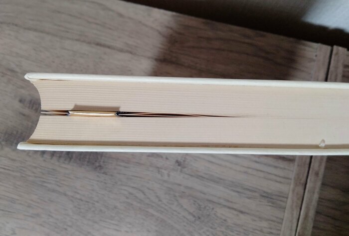 上部がゴールド加工されています。本を閉じると写真のようにゴールドがのぞき美しいです。