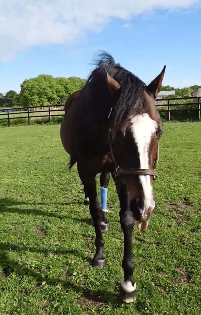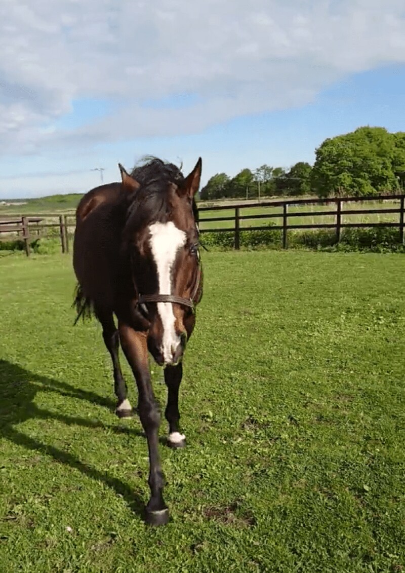 そこに収められていたのは、放牧中のタニノギムレットの姿。舌を出しながら、ゆっくりとついてきます。