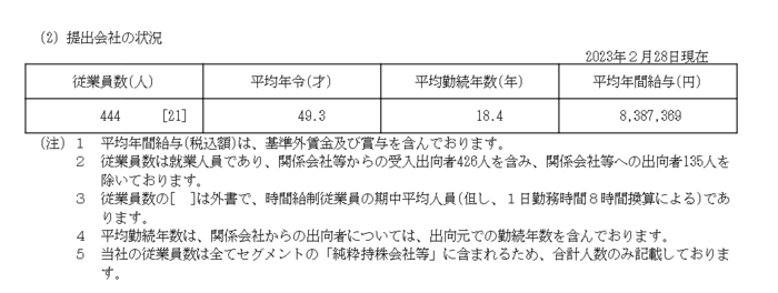 今回は最新の有価証券報告書をもとに、従業員数、平均年齢、平均勤続年数、平均年間給与、また連結会社の従業員数を見てきました。