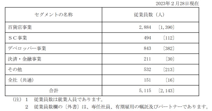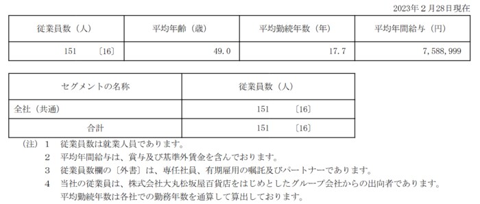 J.フロント リテイリング(提出会社)の2023年2月28日現在での従業員数、平均年齢、平均勤続年数および平均年間給与は以下の通りです。