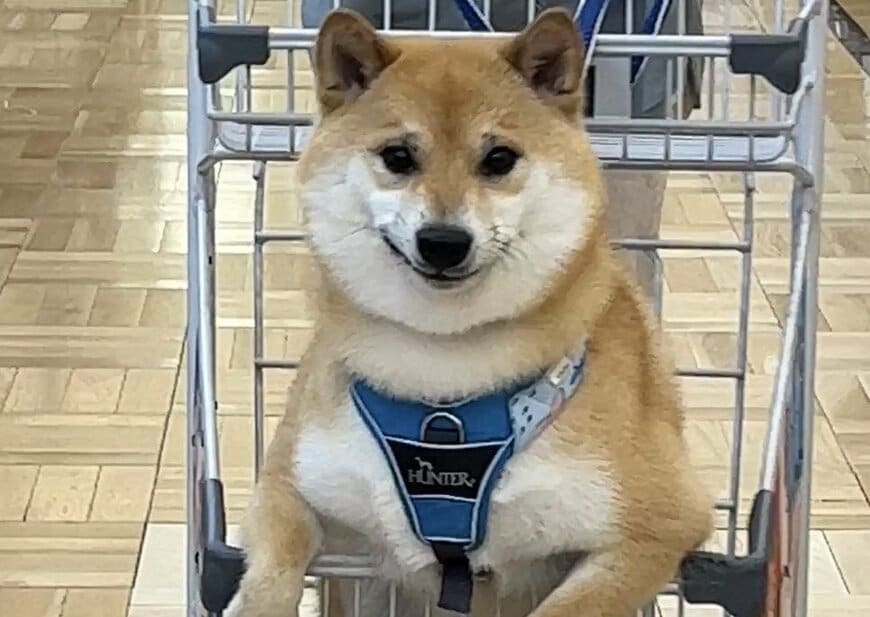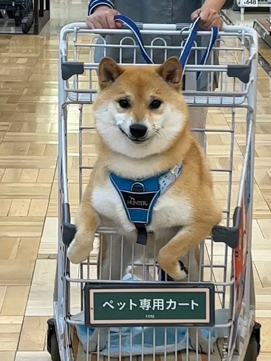 ペット専用カートに乗りながら、仁王立ちしている様子も貫録を感じさせますね。その様子は「カートは僕の愛車だ!」とでも言わんばかりで、一層ドヤ顔感を引き立てています。