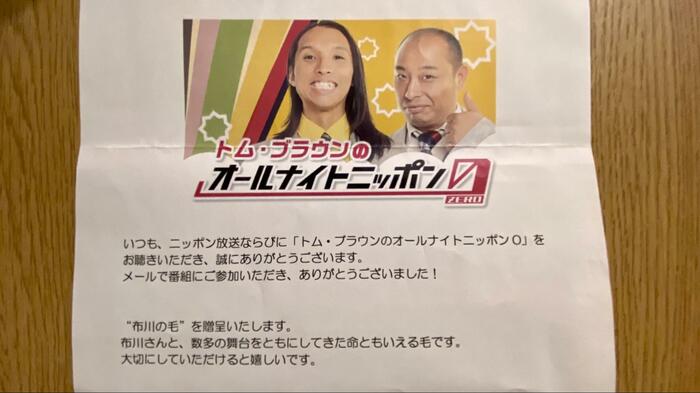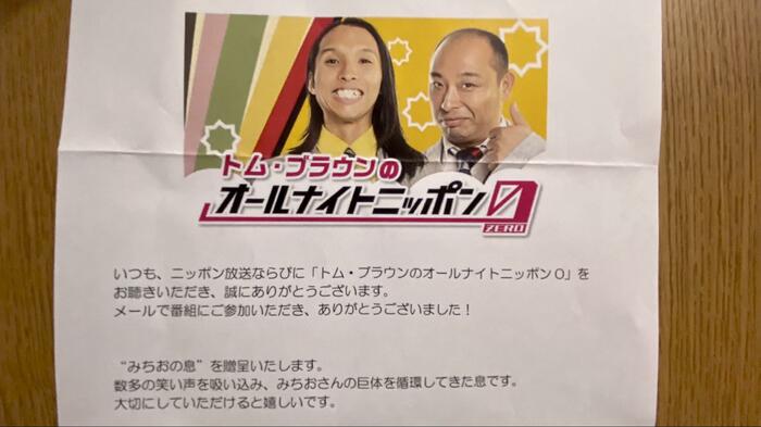 ラジオ番組「トム・ブラウンのオールナイトニッポン0」から送られてきた「衝撃的なプレゼント」がツイッター上で話題になっています。
