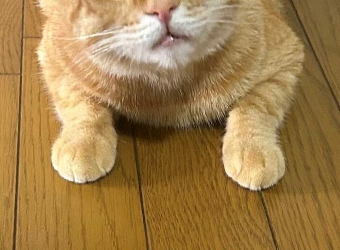床に丁寧につけたつややかでモフモフなおてても、愛らしいポイントですね。