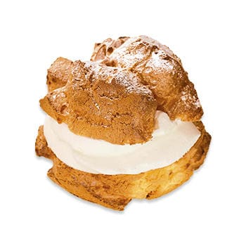 窯焼きの香ばしいシュー皮に、プレミアムシャンテクリームとカスタードクリームの2種類のクリームが入ってボリューム満点!シュー皮からこぼれるほど、たっぷり入ったクリームが魅力です。