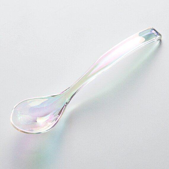 きらきらとした色合いが魅力的な「オーロラスプーン」です。ガラスの食器との相性が良さそうです。
