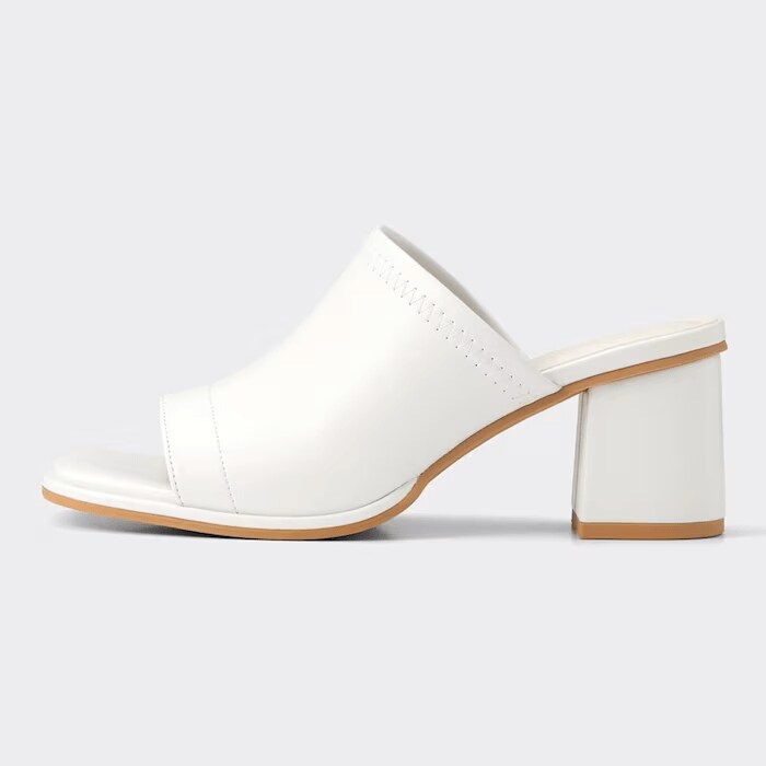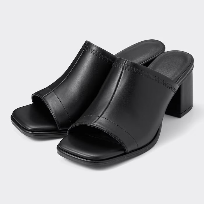 トレンドのチャンキーヒールがポイントの、スクエアトゥミュールです。おしゃれなだけでなく、安定感も抜群。やわらかいレザータッチの素材を使用し、足への負担にも配慮されています。