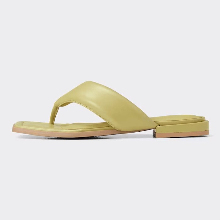低反発素材のクッションを取り入れた、足にフィットする設計のトングサンダルです。こちらもボリューム感のあるデザインで、ファッションのアクセントになります。