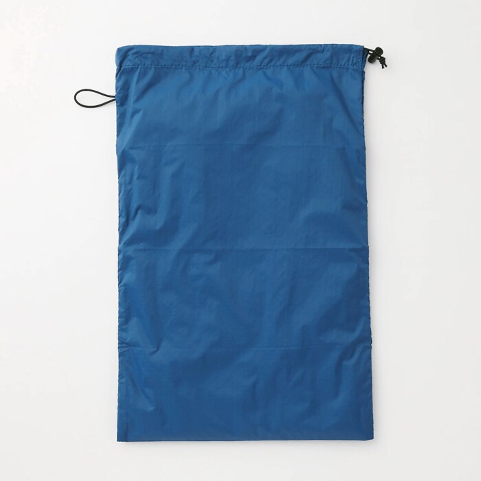 広げると大きな巾着は荷物の整理や靴の持ち運びに便利で、使わないときはコンパクトに折りたためます。