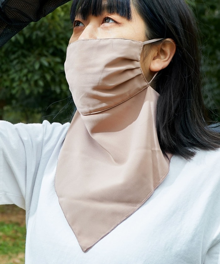 目の下から首元までの紫外線対策ができるフェイスカバー。帽子では対策できない部分までまとめて紫外線から守ってくれます。