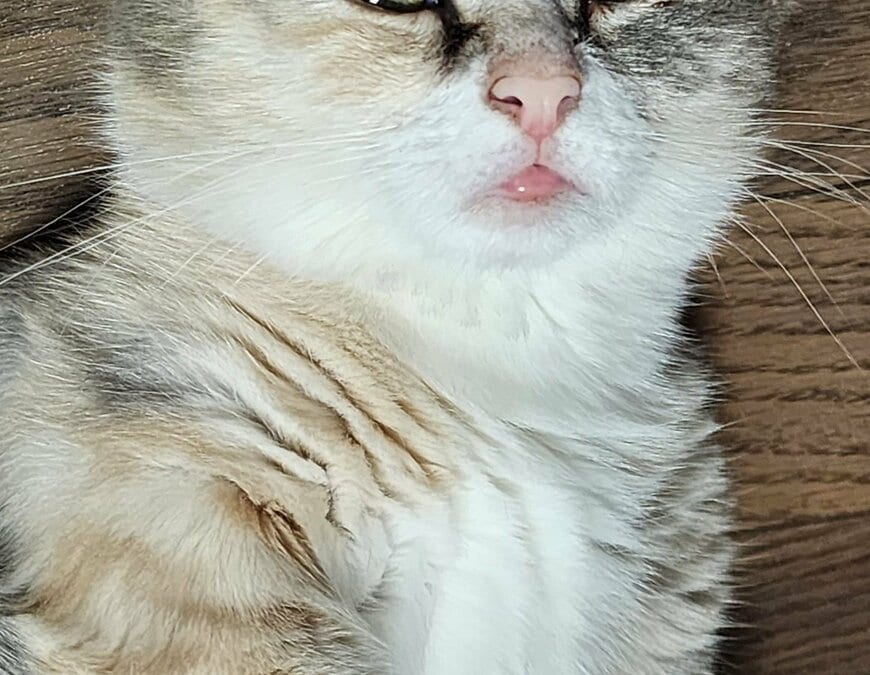 「今朝もベロが出てるにゃー」というコメントとともに投稿されたのは1枚の写真でした。