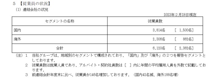今回は最新の有価証券報告書をもとに、従業員数、平均年齢、平均勤続年数、平均年間給与、また連結会社の従業員数を見てきました。