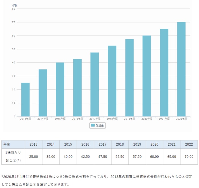 最後にニデックの配当金の推移を確認しましょう。