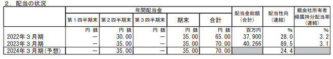 - 2023年3月期・期末配当:35円