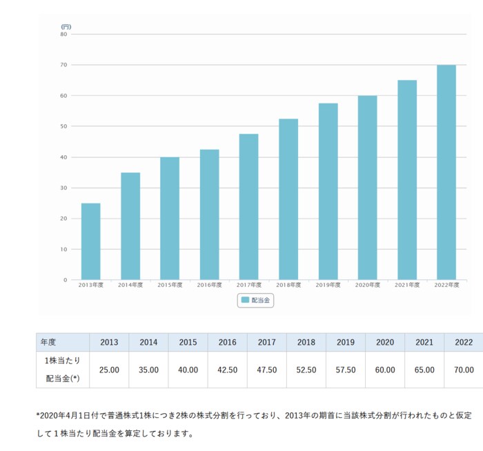 最後にニデックの配当金の推移を確認しましょう。
