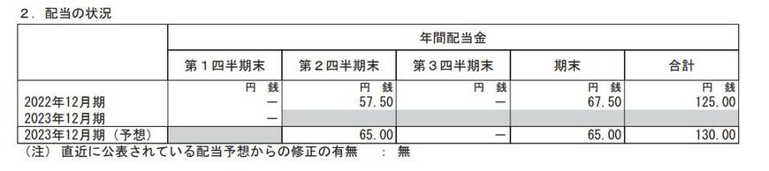 - 2022年12月期・期末配当:67.5円