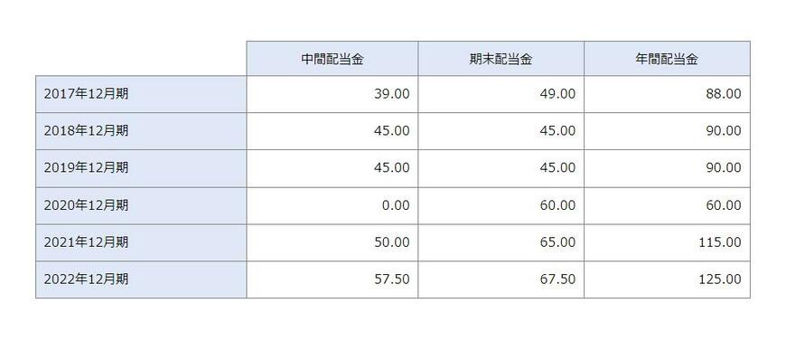 - 100株ベースの配当金のリターン:1万2500円