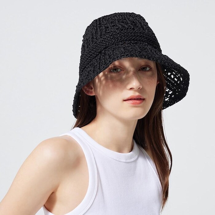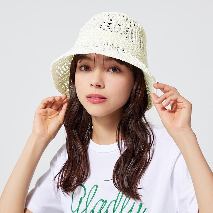 こちらがGUで販売されている「クロシェバケットハット」です。ざっくりとした編み方が涼しげで、おしゃれな帽子です。